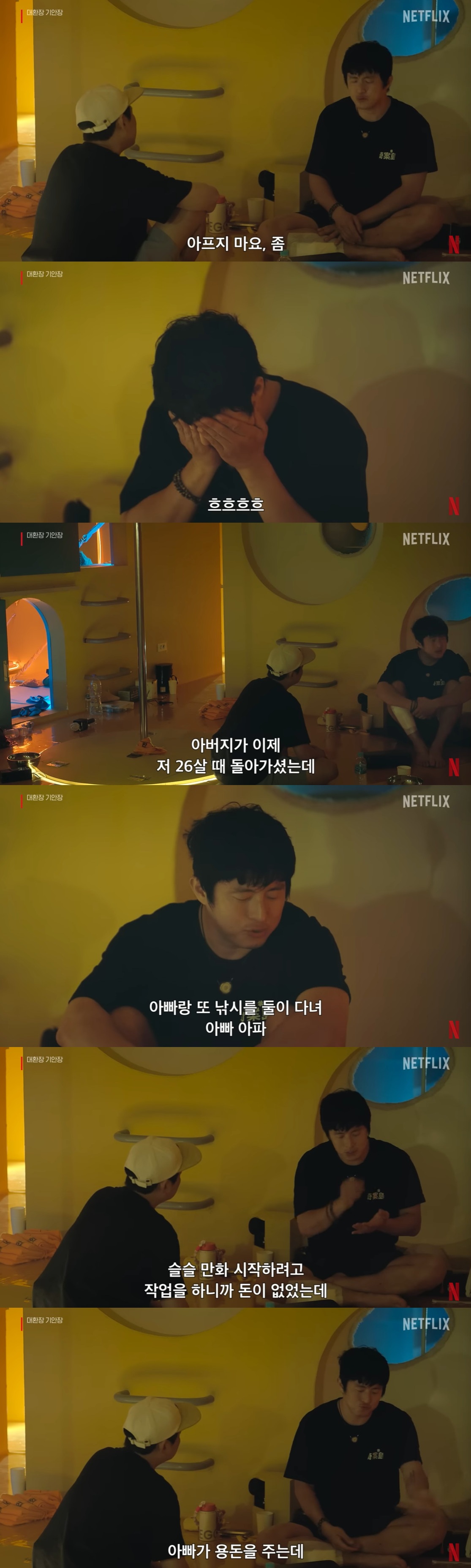 이어 기안84는 "너무 짜증나는 게, 나도 좀 호강은 시켜드리고 (싶었는데) 타이밍이 안 되는 거다. 아빠가 돈을 주는데, 그걸 받기만 하니까"라며 울컥한 모습을 보였다.