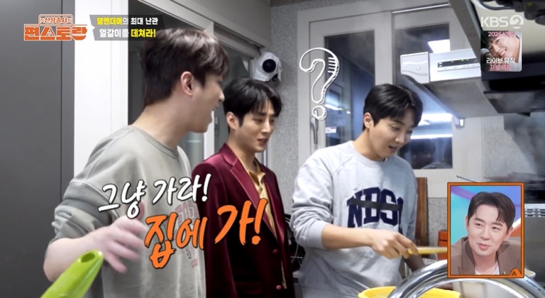 18일 방송된 KBS 2TV '신상출시 편스토랑'(이하 '편스토랑')에서는 이찬원의 집에 절친 요리 덤앤더머 황윤성과 김중연이 방문했다.