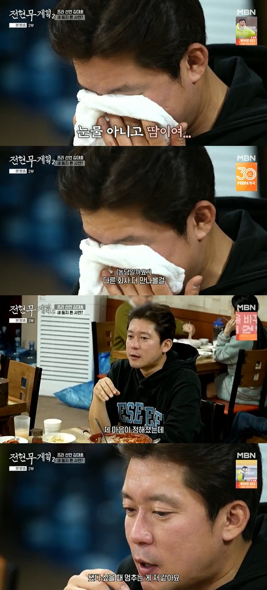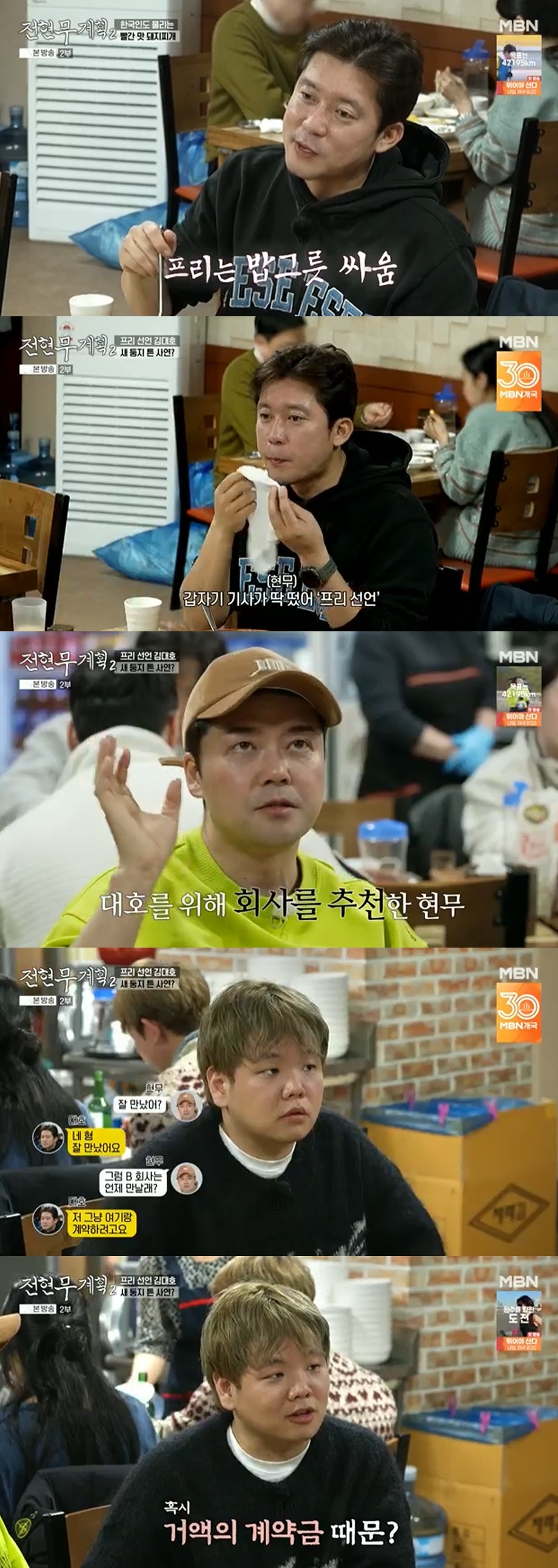 이어 전현무는 김대호의 프리선언 당시를 회상했다. 그는 "김대호가 참 김대호구나 생각을 했다. 프리 선언이라고 기사가 뜨는데, 뜨자마자 나한테 '형 이제 어떻게 해야하냐'는 문자가 왔다"고 운을 뗐다.