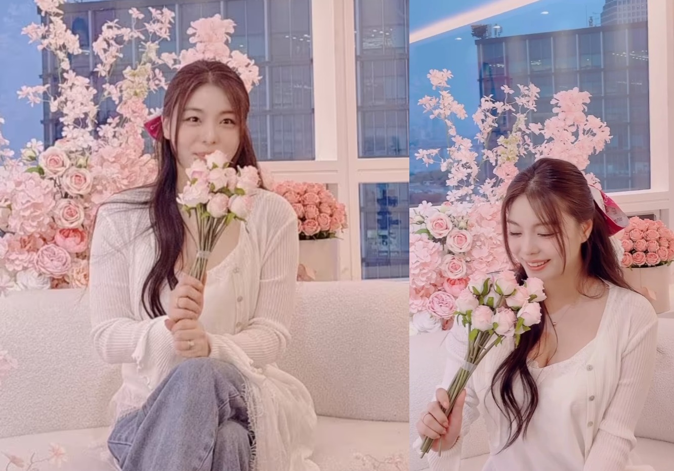 공개된 영상에는 핑크빛 꽃 장식으로 가득한 공간에서 친구들이 준비한 브라이덜 샤워를 즐기고 있는 에일리의 모습. 화이트 가디건에 데님을 매치한 에일리는 자연스러운 스타일링으로 흐드러진 꽃들 사이에서 화사한 분위기를 더했다.
