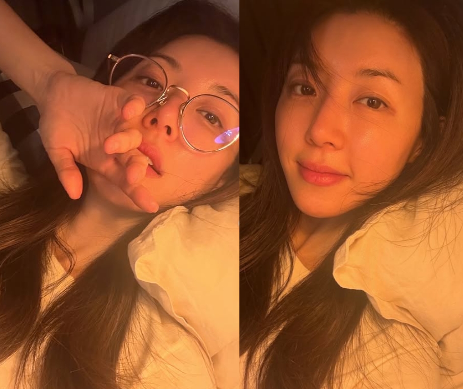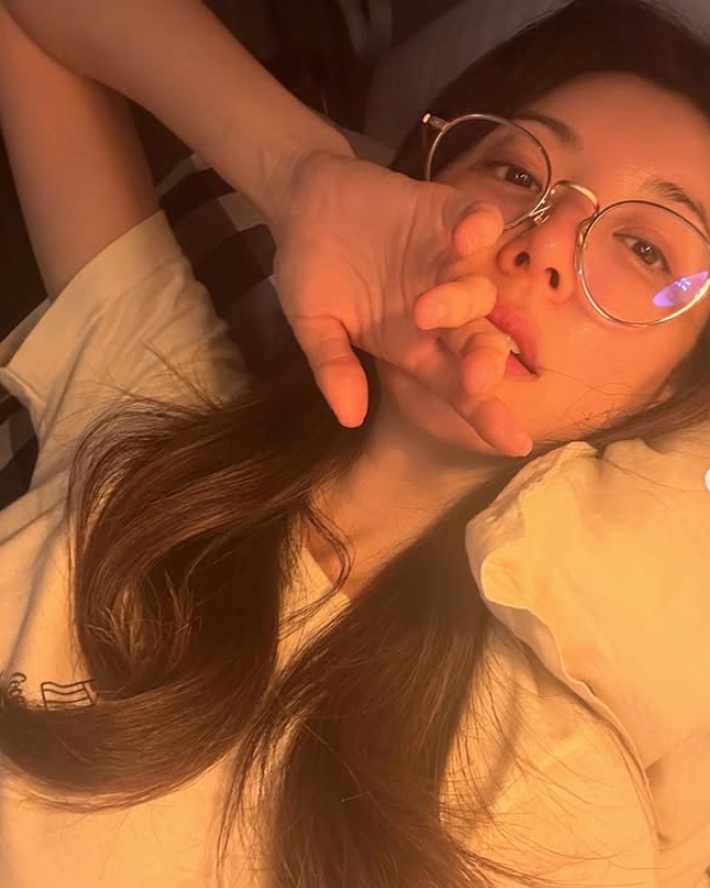 공개된 사진 속 안경을 쓴 박한별은 침대에 누워 한 손으로 턱 근처를 가리는 포즈를 취하고 있다. 잠들기 직전인 듯 보이는 박한별의 민낯에도 잡티 하나 없이 깨끗한 피부가 눈길을 끈다.