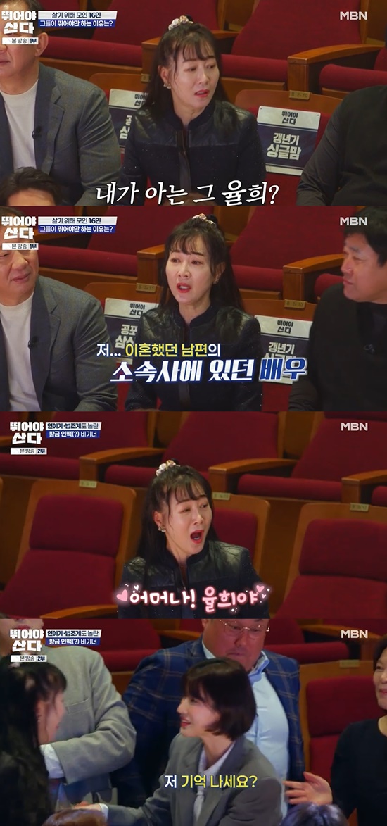 이날 참가자들에는 각자의 사연을 담은 키워드가 달렸고, LED 전광판에는 ‘내 이름은 율희’라는 문구가 공개돼 관심을 모았다. 이를 본 방은희는 "율희? 나 아는데. 저 이혼했던 두 번째 남편의 소속사에 있던 배우. 라붐..."라고 깜짝 발언을 던졌다.