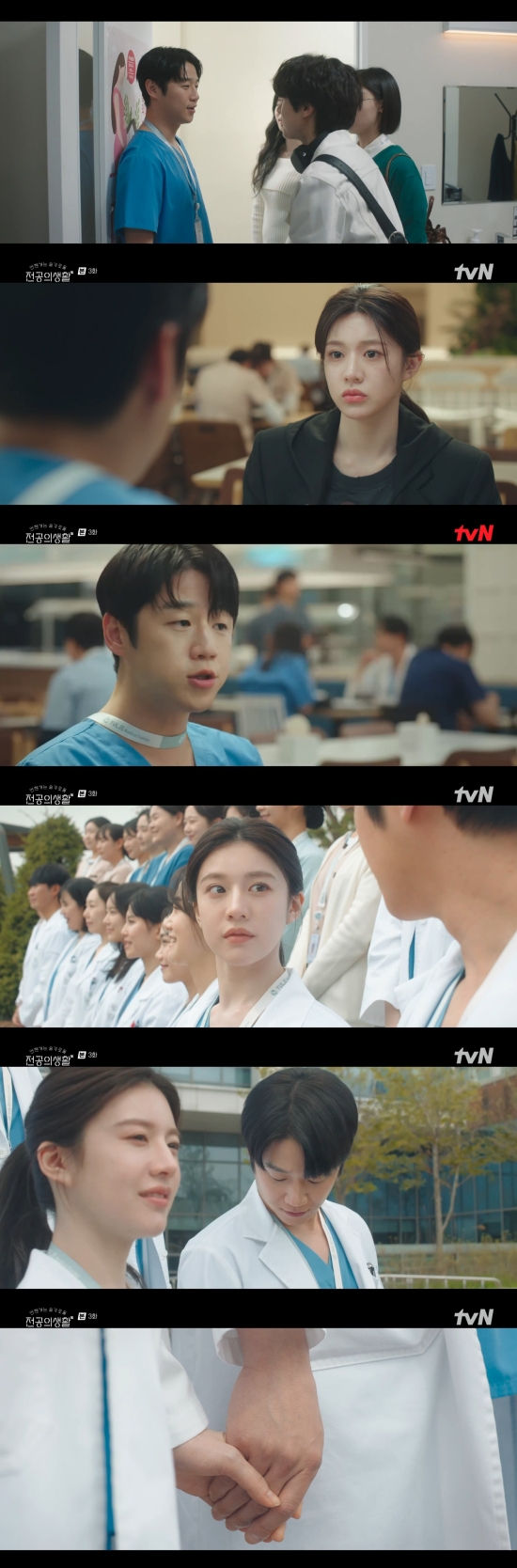 (엑스포츠뉴스 이이진 기자) '언젠가는 슬기로울 전공의생활' 고윤정이 단체 사진 촬영 도중 갑작스럽게 정준원의 손을 잡았다.