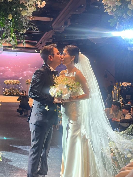 심현섭은 하얀 부케를 든 정영림에게 입을 맞추며 행복한 미래를 다짐했다.