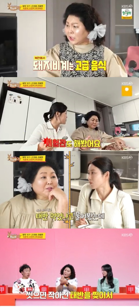 20일 방송된 KBS 2TV '사장님 귀는 당나귀 귀'에서는 이순실이 탈북민 동생 김아라를 위해 요리를 하는 모습이 전파를 탔다.