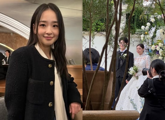 공개된 사진 속 손연재는 에일리와 배우 출신 사업가 최시훈의 결혼식에 하객으로 참석했다. 행복한 미소를 짓고 있는 에일리의 웨딩드레스 자태가 눈길을 끈다.