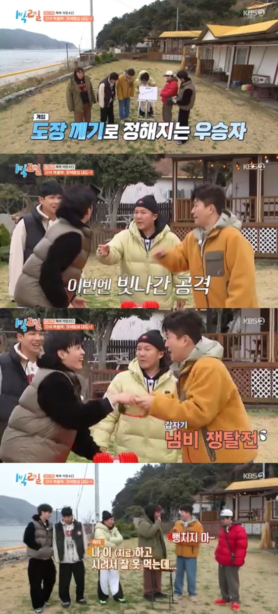 이날 멤버들은 내도 바다 밥상이 걸린 저녁 복불복을 준비했다. 주종현PD는 이번 저녁 복불복은 도장깨기 방식으로 진행, 딱 한 사람만 먹을 수 있다고 말했다.