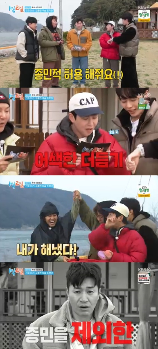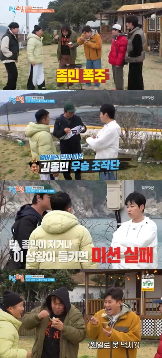 주종현PD는 김종민에게 진짜 저녁식사 복불복에 대해 알려주며 김종민을 제외한 멤버들만 저녁식사를 획득했다고 알려줬다.