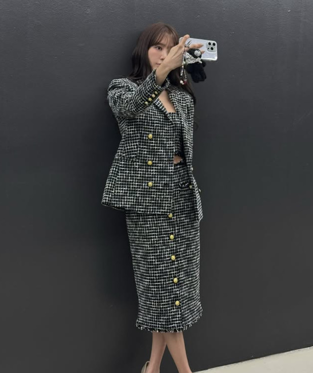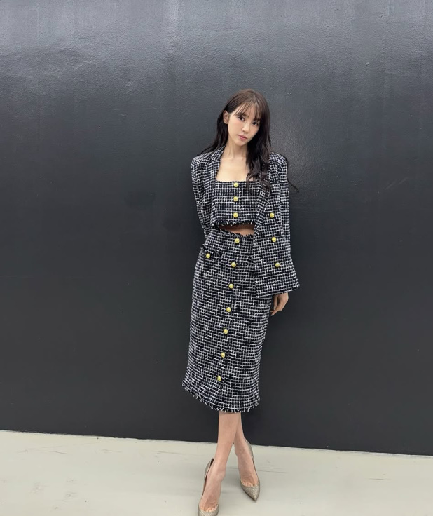 공개된 사진 속 윤은혜는 트위트 타입의 셋업을 입고 청순한 매력을 뽐냈다. 복근을 살짝 드러낸 크롭탑에 미디 스커트를 입고 세련된 분위기를 자아냈다.