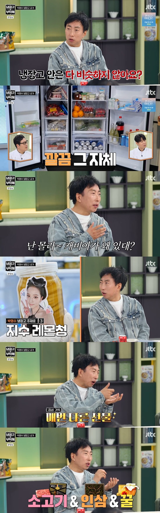 이후 박명수의 냉장고가 공개됐다. 박명수는 블랙핑크 지수에게 레몬청을 선물 받았다고 했고, "제가 목이 아프니까 지수 씨가 라디오에 나올 때 가져다줬다"고 설명했다.