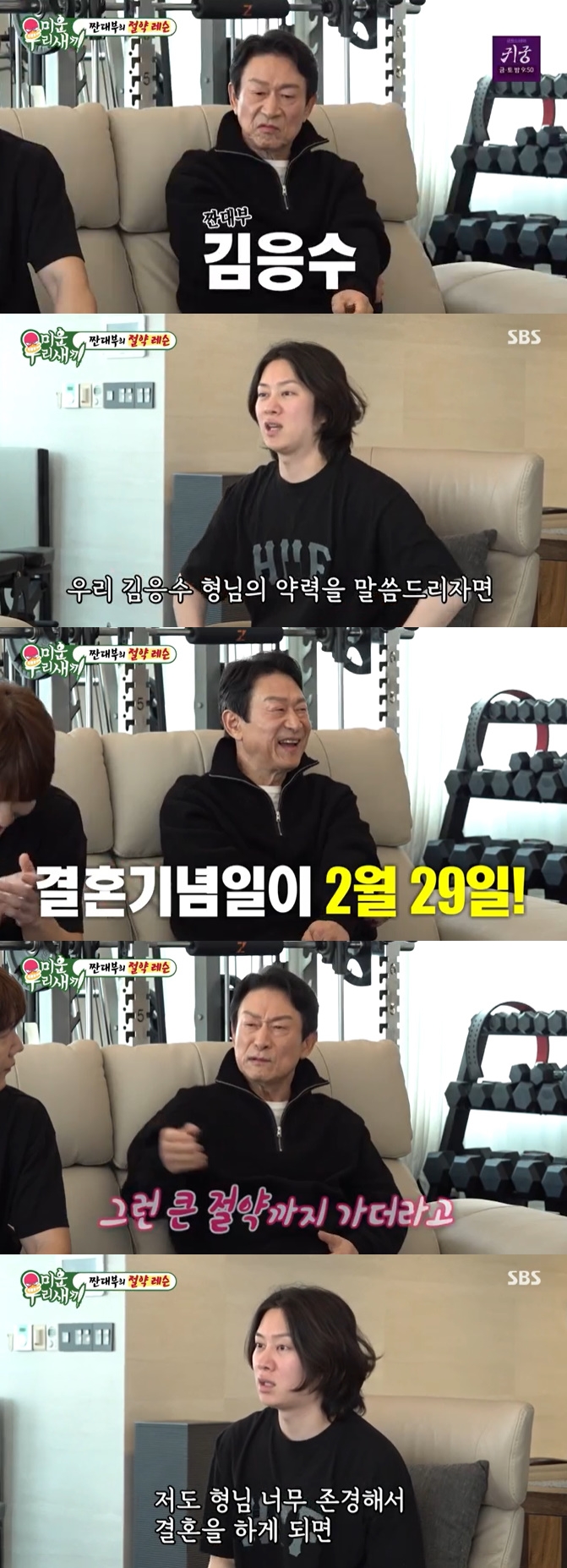 김희철은 "저도 형님을 리스펙해서 결혼을 하게 되면 2월 29일로"라며 김응수의 절약 정신을 따라가려는 의지를 보였다.