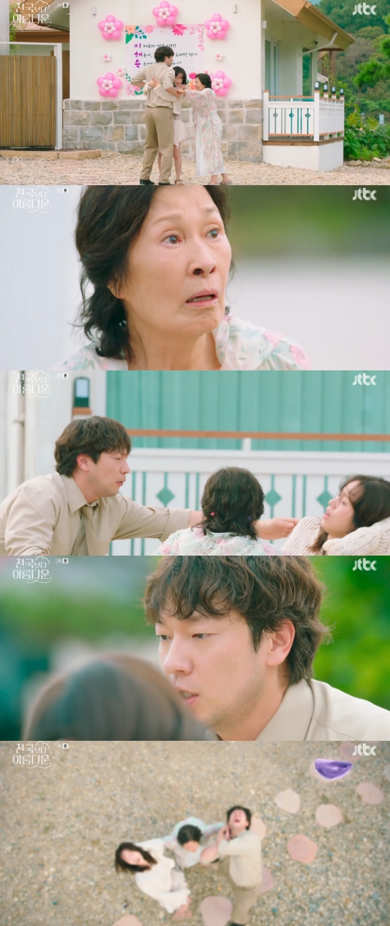 (엑스포츠뉴스 이이진 기자) '천국보다 아름다운' 김혜자가 손석구를 찾아온 한지민의 머리채를 잡았다.