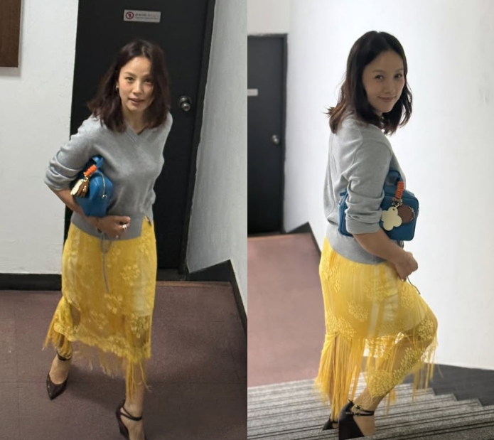 공개된 영상 속 이효리는 그레이 맨투맨에 노란색 롱스커트를 매치한 독특한 패션을 선보이고 있다. 앞서 20일 이효리는 코요태 김종민의 결혼식에 참석했으며 '패션의 아이콘'답게 또 한번 하객룩으로 화제를 모았다.