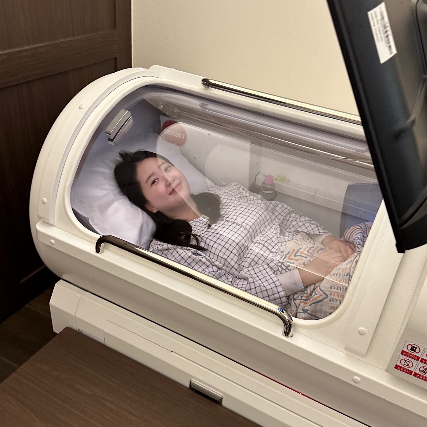 이어 "그런 아내를 위해서 그리고 저속 노화가 꼭 필요한 저를 위해서 꾸준히 받고 있는 고압산소케어 소개합니다"라며 "확실히 받고 나면 컨디션 차이가 난다"고 추천했다.
