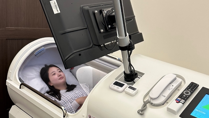 (엑스포츠뉴스 정민경 기자) 박수홍이 고압산소케어를 받고 있는 아내 김다예의 모습을 공개했다.