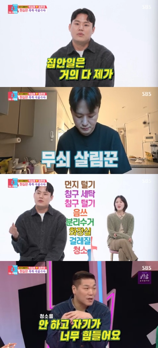 그리고 공개된 일상 영상에서는 출장에서 돌아온 남편 엄준태의 모습으로 시작됐다. 엄준태는 출장 후 집에 오자마자 어지러진 집을 청소했다.