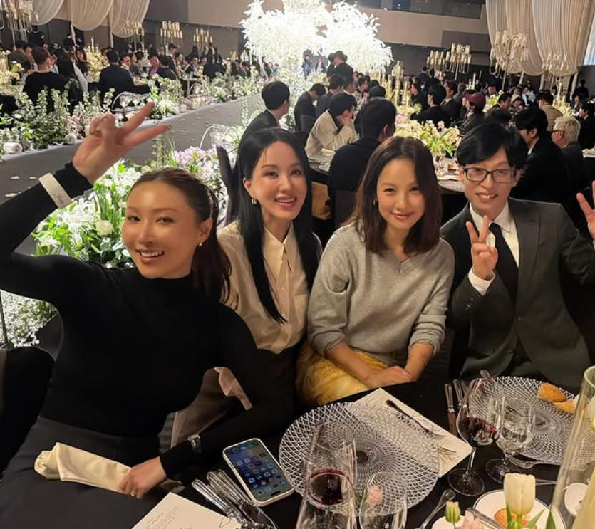 공개된 사진 속 엄정화는 화사와 이효리, 유재석과 함께 김종민의 결혼식에 참석한 모습. 밝게 웃고 있는 이들의 모습이 훈훈함을 자아낸다. 엄정화, 이효리, 화사, 제시는 MBC '놀면 뭐하니'에서 '환불원정대'로 활약하며 시청자를 만난 바 있다. 유재석까지 함께있는 모습이 반가움을 자아냈으나, 제시는 함께하지 못해 아쉬움을 안겼다.