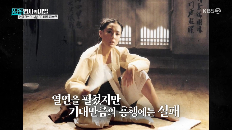 22일 방송된 KBS 2TV '셀럽병사의 비밀'에서는 故 강수연의 생로병사가 공개됐다. 이날 강수연의 연기 인생에 큰 영향을 미쳤던 임권택 감독의 '씨받이'가 소개됐다.
