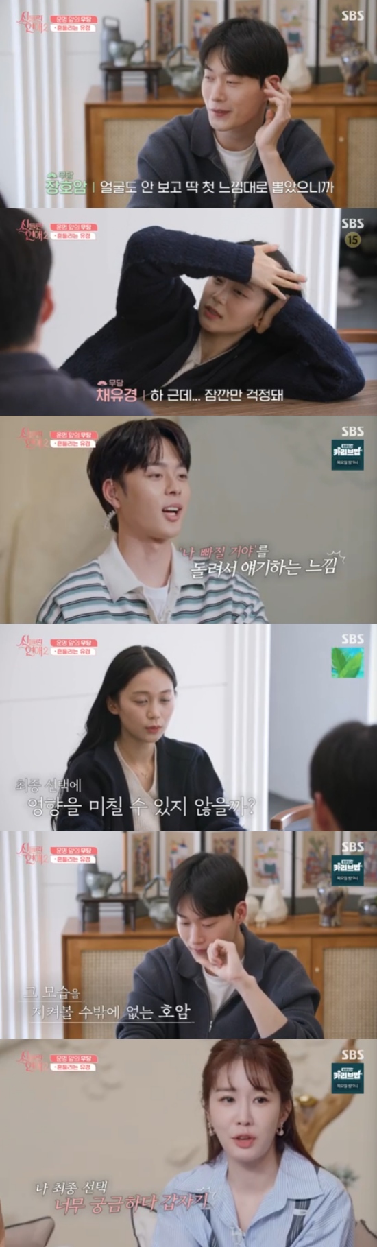 채유경은 "(운명패 데이트는) 제일 끌렸던 사람과 데이트를 하는거니까 나뿐만 아니라 오늘은 모두에게 좀 위험할 것 같다. 끌리는 사람한테 너무 끌릴까봐 걱정"이라고 고백했다.