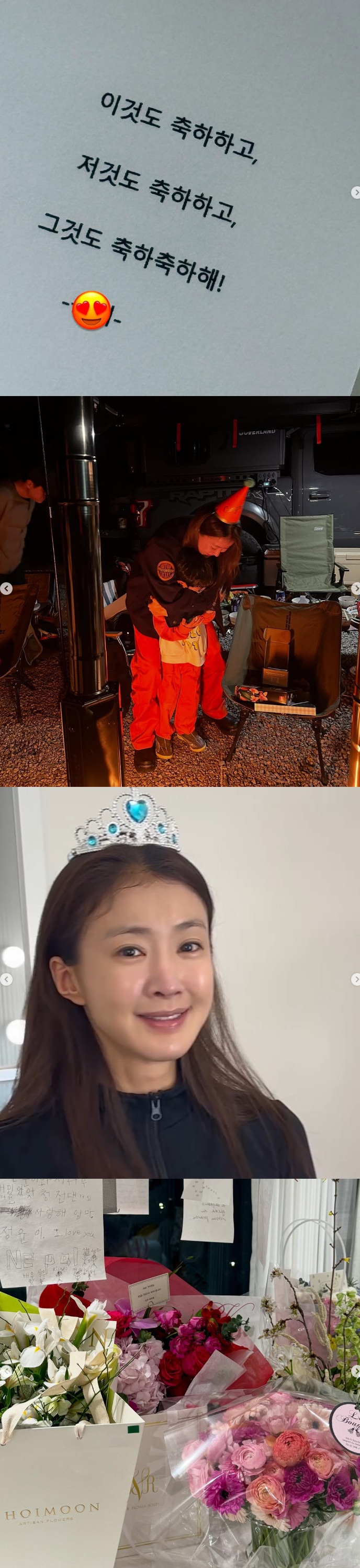 '이것도 축하하고 저것도 축하하고 그것도 축하축하해', '엄마 생일 축하해요! 캠핑갈 때까지 힘들게 준비한 선물이야!' 등 지인과 아들에게 받은 편지 내용이 훈훈함을 안긴다.