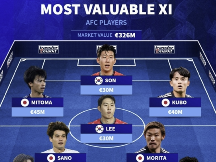 특히, 일본이 7명이나 배출한 것이 이례적으로 간주됐다. 매체가 공개한 유럽, 북중미 등 다른 대륙 선수 가치 베스트 11에도 한 국가에서 선수를 7명이나 배출한 경우는 없었다.