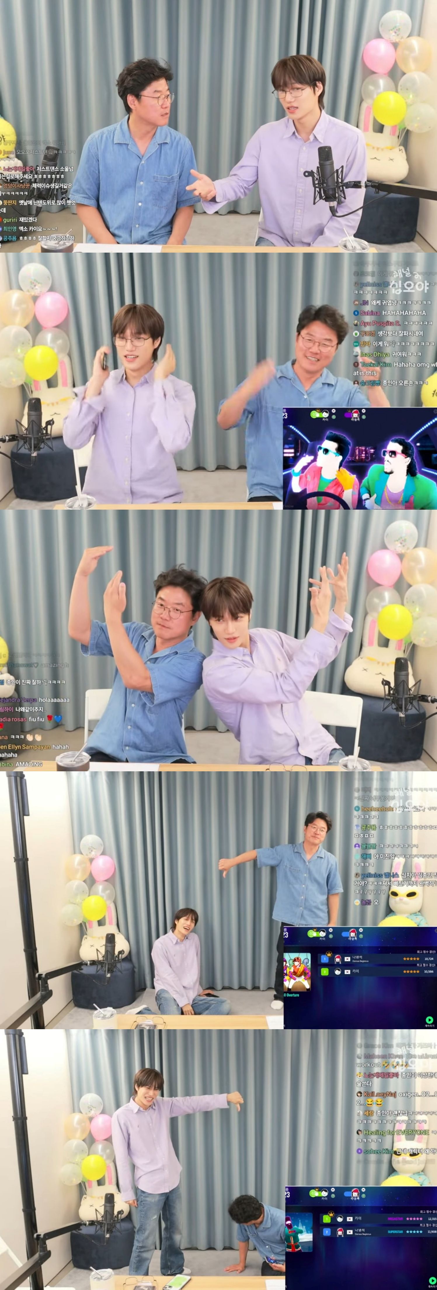 이날 나영석PD는 "카이 씨가 나온다고 해서 재밌는걸 준비했다"면서 댄스 게임 '저스트댄스'에 도전했다. 앉아서 춘 첫 연습 게임 후 두 사람은 엑소의 '몬스터'에 도전했고 기진맥진한 모습으로 웃음을 자아냈다.