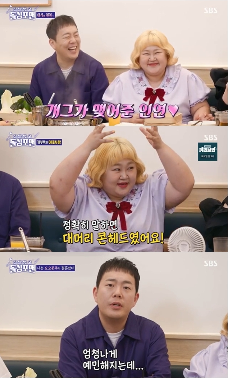 22일 방송된 '신발 벗고 돌싱포맨-개부부의 세계' 특집에서 홍윤화와 김민기는 티키타카 케미로 보는 재미를 끌어올렸다.