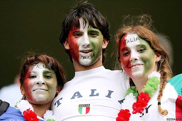 킥 오프 전 밝은 표정의 이탈리아 서포터스