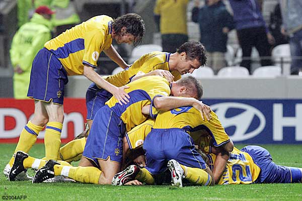 극적인 동점골에 기뻐하는 스웨덴 선수들