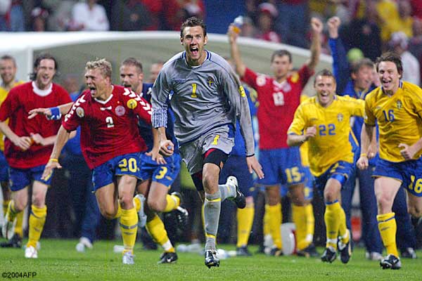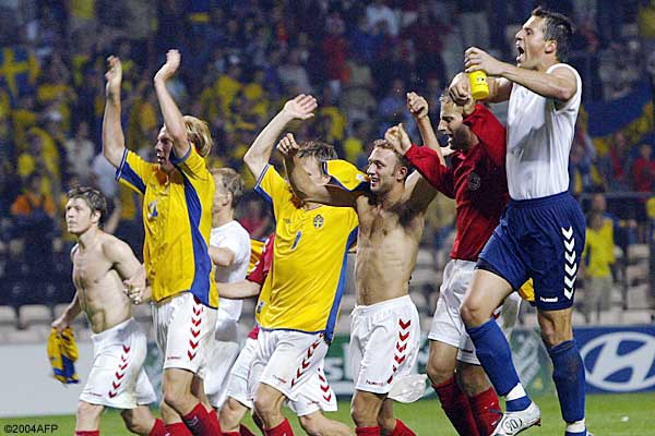 인저리 타임인 94분 카사노의 천금같은 골로 역전에 성공한 이탈리아는 승리의 기쁨에 환호를 하지만 이내 8강 탈락 소식으로 좌절하고 맙니다. '무적 함대' 스페인에 이어 '아주리 군단' 이탈리아의 탈락은 유로2004에서 세계적인 선수들의 수퍼 플레이를 볼 수 없다는 커다란 아쉬움을 주지만 승부는 냉혹할 뿐입니다. 1승 2무 승점 5점을 기록하지만 안타깝게 탈락한 이탈리아는 이전 2경기의 무승부 특히 섣부른 잠그기로 1-1 무승부를 기록한 스웨덴점이 뼈 아플 것입니다.
