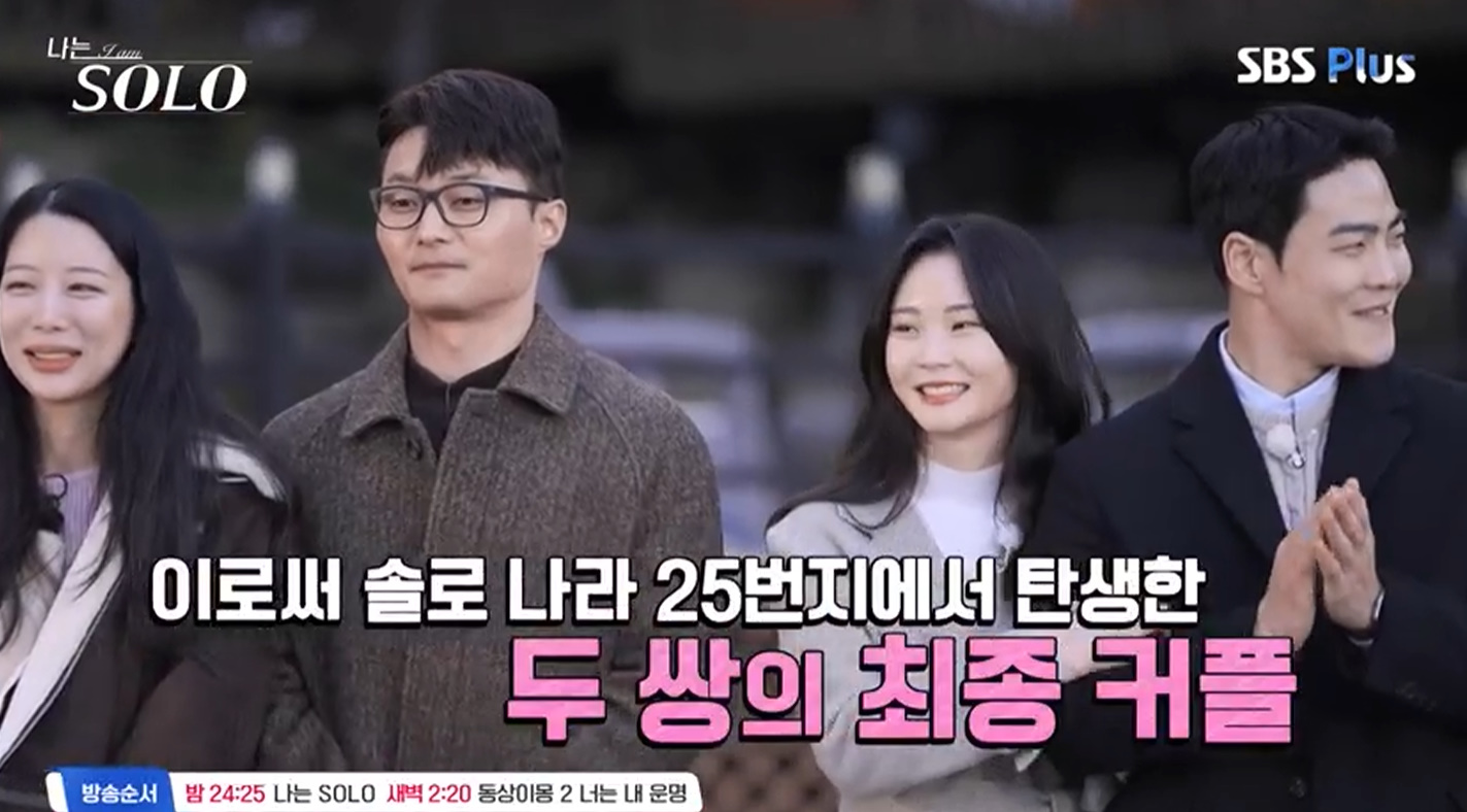 23일 방송된 SBS Plus, ENA 리얼 데이팅 프로그램 ‘나는 SOLO’에서는 25기 최종 선택이 전파를 탔다.