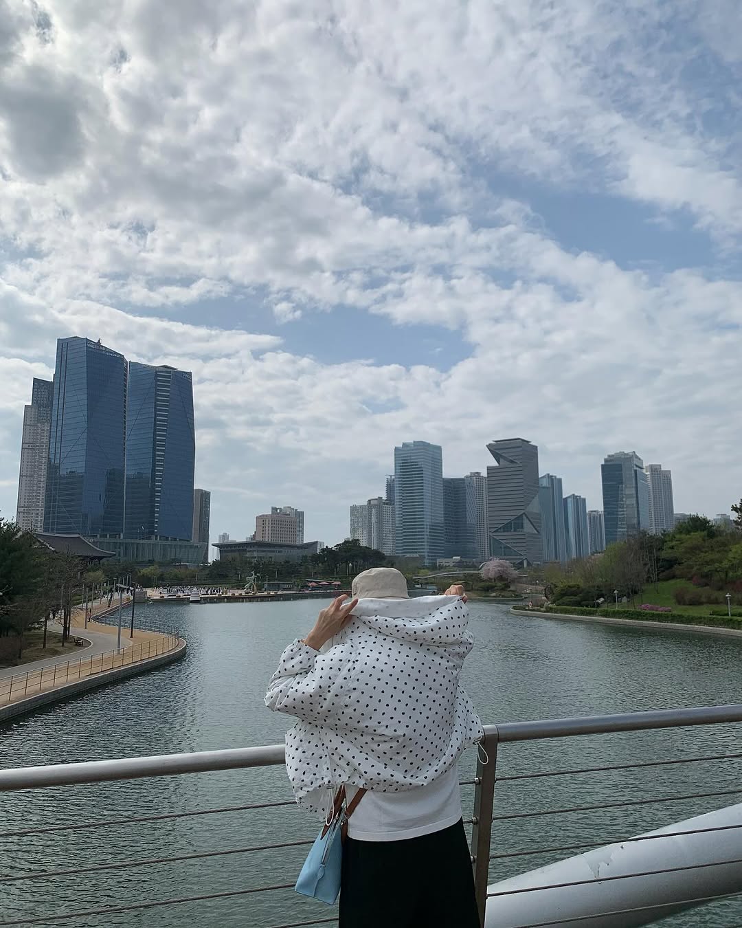 24일 박미선은 자신의 SNS에 "아들이랑 잠깐 바람 쐬러 나왔는데. 와 ~ 날씨가, 공기가 대박이구만요"라며 한장의 사진을 게재했다.