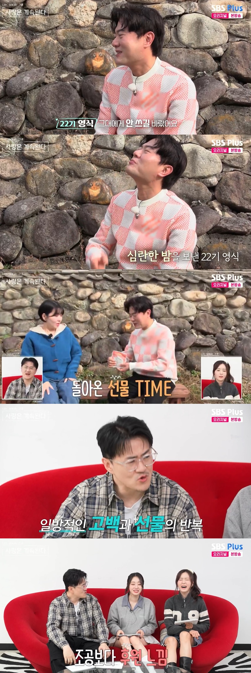 24일 방송된 ENA, SBS Plus 예능 프로그램 '나는 솔로, 그 후 사랑은 계속된다'에서는 22기 영식이 백합에게 호감을 표하는 모습이 전파를 탔다.