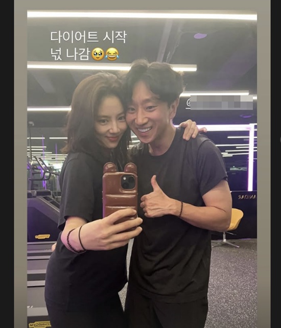 공개된 사진 속 두 사람은 블랙 운동복 차림으로 인증 사진을 남기는 모습. "다이어트 시작 넋 나감"이라는 글과 함께 출산 후 본격적인 다이어트 시작을 알려 눈길을 끌었다.