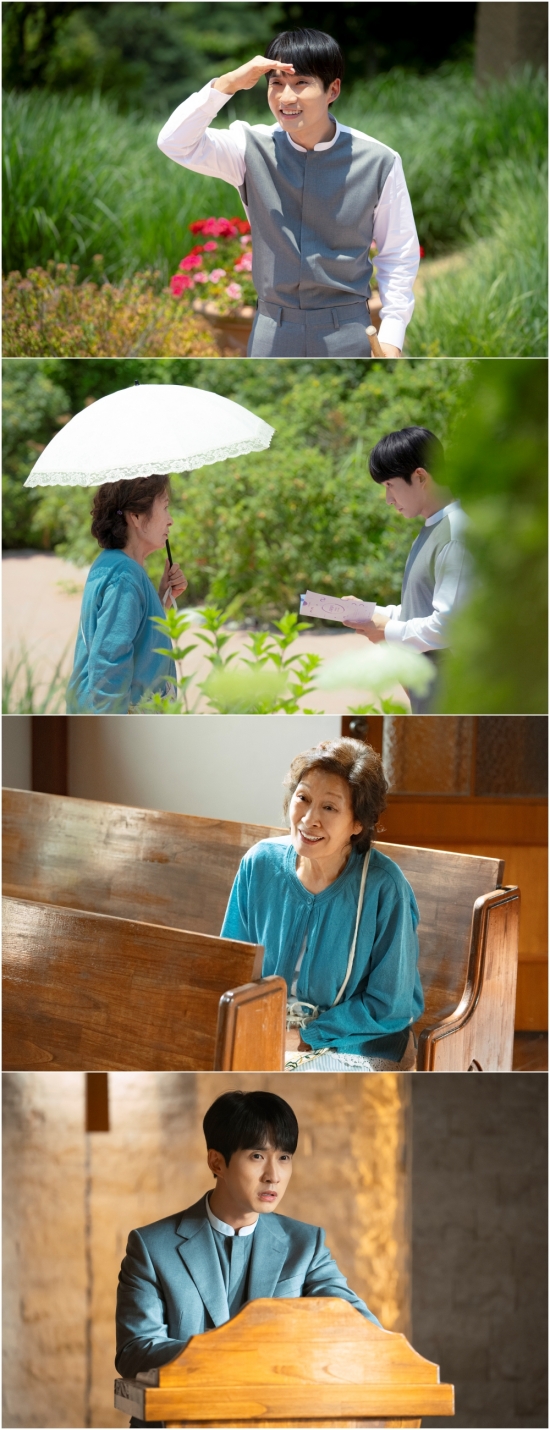 JTBC 토일드라마 ‘천국보다 아름다운’ 측은 3회 방송을 앞둔 25일, 이해숙(김혜자 분)과 목사(류덕환 분)의 첫 만남이 담긴 스틸컷을 공개했다. 한가한 목사와 80세 신도의 신성한(?) 만남이 기대감을 자극한다.