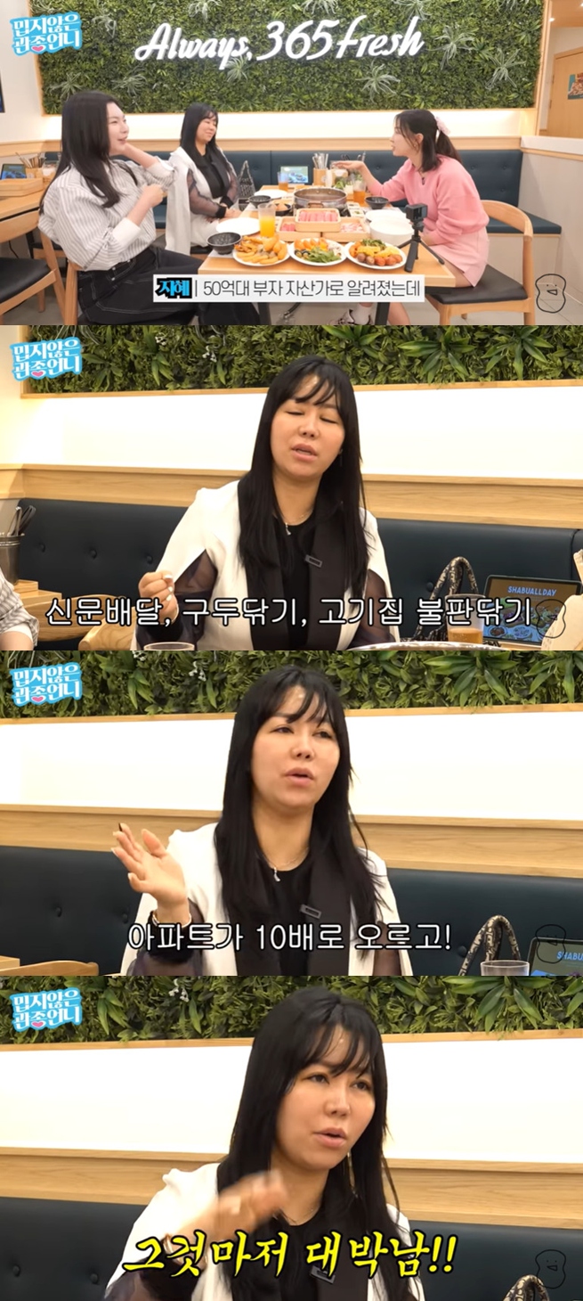 깜짝 놀란 이지혜는 상상도 못한 자산에 감탄하면서도 "너무 힘들게 사니까 돈을 벌어야겠다(고 느꼈을 것 같다)"며 10기 정숙의 과거에 공감했다.