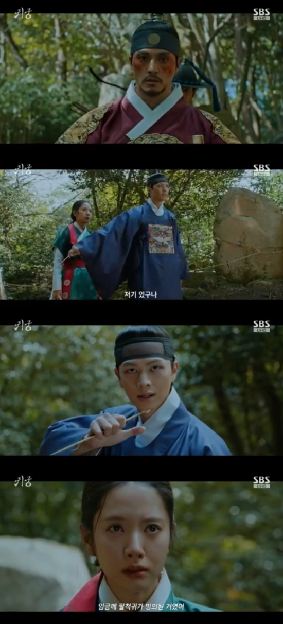 26일 방송된 SBS 금토드라마 '귀궁' 4회에서는 팔척귀에 빙의된 왕(김지훈 분)과 마주한 강철이(육성재), 여리(김지연)의 모습이 그려졌다.