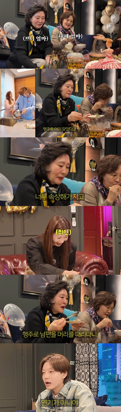 이를 듣던 이다해의 어머니는 "나는 너무 찰지게 때렸다고 (생각했다) 어쩜 그리 찰지게 때려"라고 말하자, 세븐의 어머니는 "나는 그냥 연기는 연기일 뿐 그렇게 보니까 괜찮아"라고 전했다.