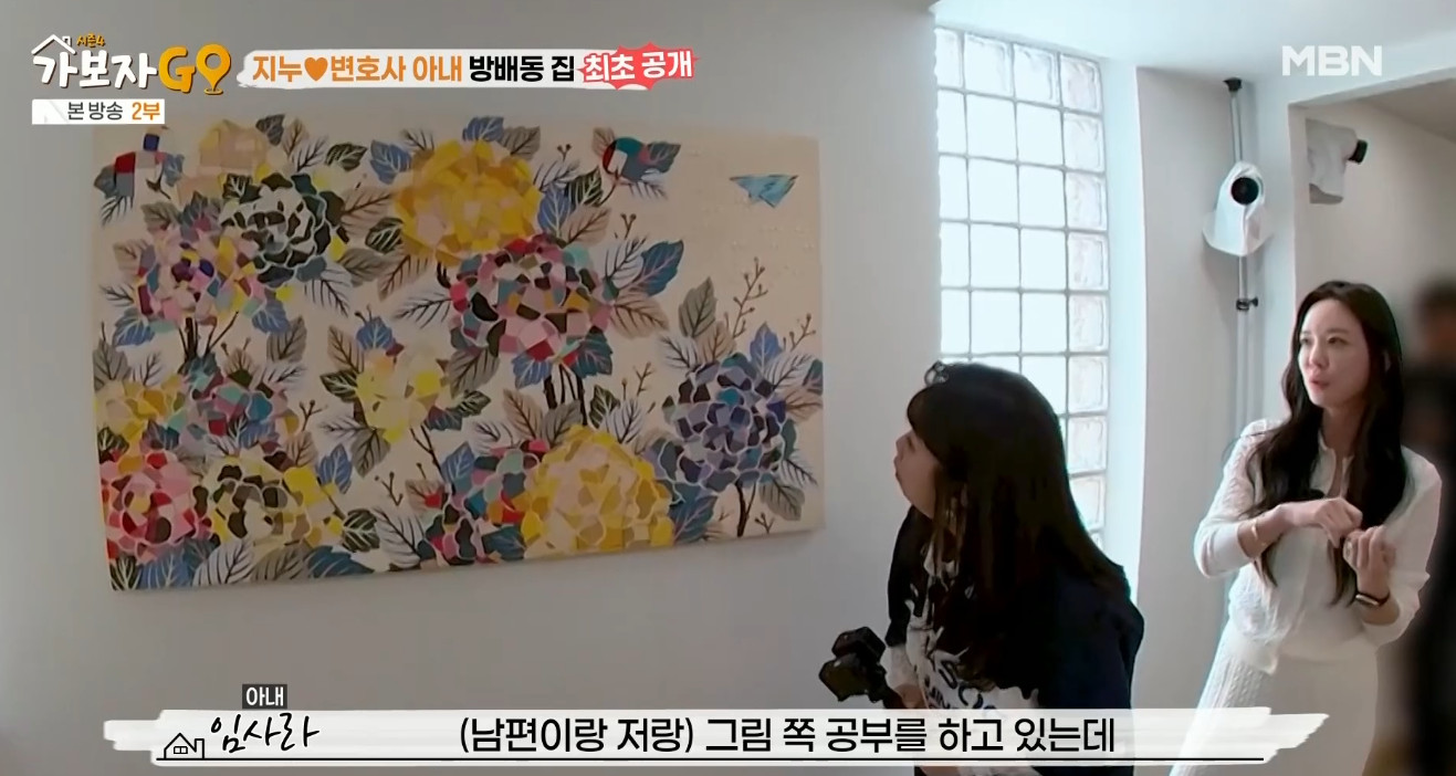 이날 부엌 쪽에 위치한 큰 그림이 눈길을 끌었다. 이에 지누의 아내 임사라는 "남편이랑 그림 쪽을 공부하고 있는데. 그림을 막상 사려니까 너무 비싸고 뭘 사야 할지 모르겠고 그래서 신진 작가들을 대여해 주는 서비스가 있더라. 저희 집이랑 어울리는 걸 큐레이터가 상담도 해주시고"라고 설명했다.