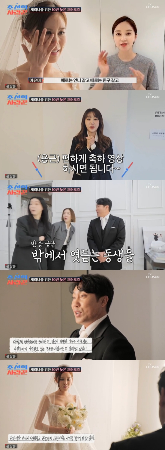 특히 박용근은 웨딩드레스 숍에 함께 갈 김진과 민경에게도 프러포즈 계획을 공유했다. 이후 지인들의 영상 편지가 공개됐고, 백지영, 이상민, 아유미, 간미연, 나르샤, 김호영, 채리나 시어머니, 채리나 어머니가 등장해 감동을 안겼다.
