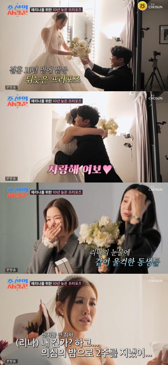 (엑스포츠뉴스 이이진 기자) 가수 채리나가 전 야구 선수 박용근에게 프러포즈를 받고 눈물 흘렸다.