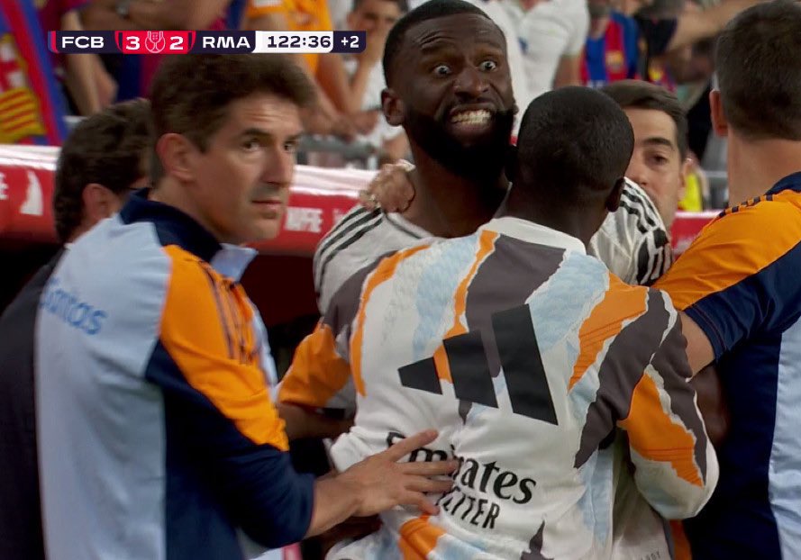 뤼디거는 지난 27일 스페인 세비야에 있는 에스타디오 라 카르투하 데 세비야에서 열린 바르셀로나와 레알 마드리드의 2024-2025시즌 코파 델 레이 결승전에서 퇴장을 당했다.