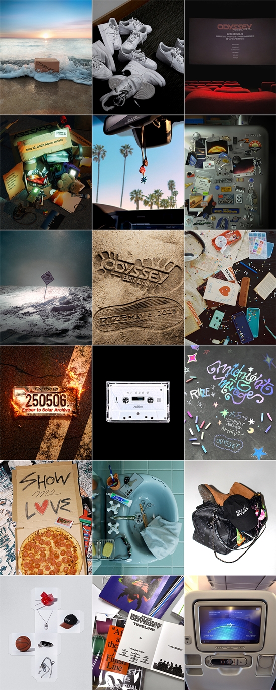 또한 오늘(29일) 0시 라이즈 오디세이 인스타그램 계정 및 공식 인스타그램 계정에서 '리얼타임 오디세이' 타임라인이 공개되었으며, 컴백일까지 주요 프로모션 스케줄을 피드 속 다채로운 무드컷과 텍스트로 표현해 앨범을 향한 관심을 고조시키고 있다.
