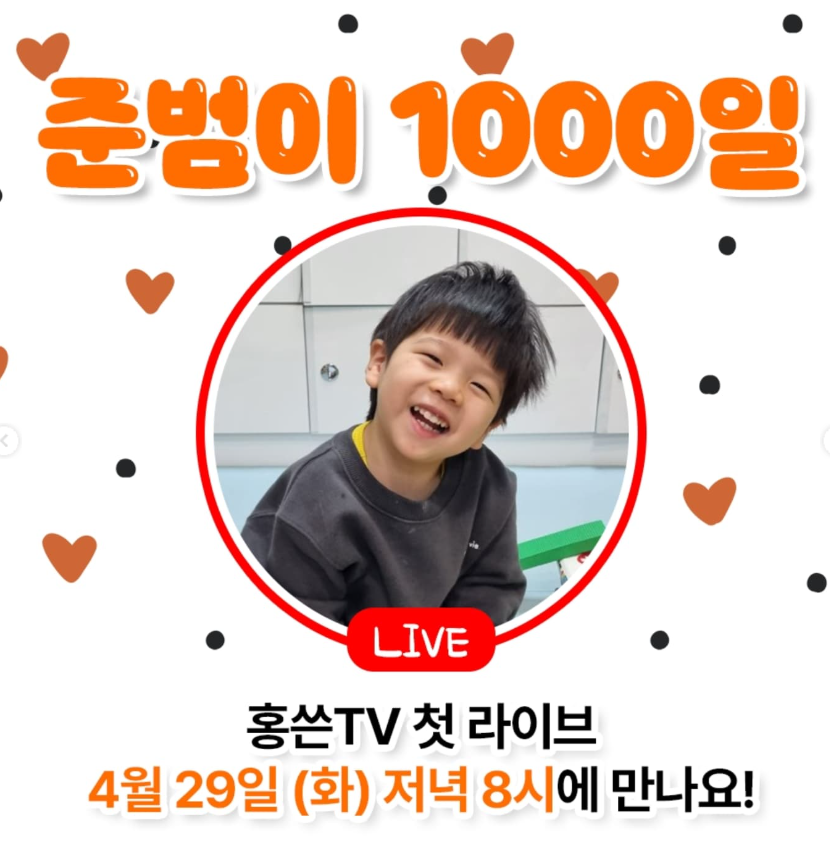 앞서 홍현희는 어제(28일) 아들 준범의 1000일을 맞아 오늘(29일) 유튜브 채널 '홍쓴TV'를 통한 라이브 방송을 예고하기도 했다. 이에 랜선 이모, 삼촌들은 준범이의 1000일을 축하하는 댓글을 남기고 있다.