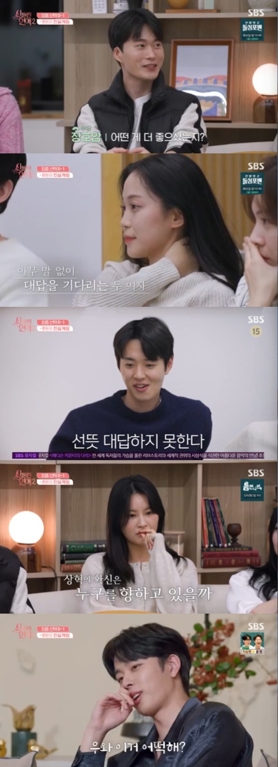 (엑스포츠뉴스 오수정 기자) '신들린 연애2'에서 최종 선택을 하루 앞두고 속마음을 알 수 있는 진실게임을 했다.