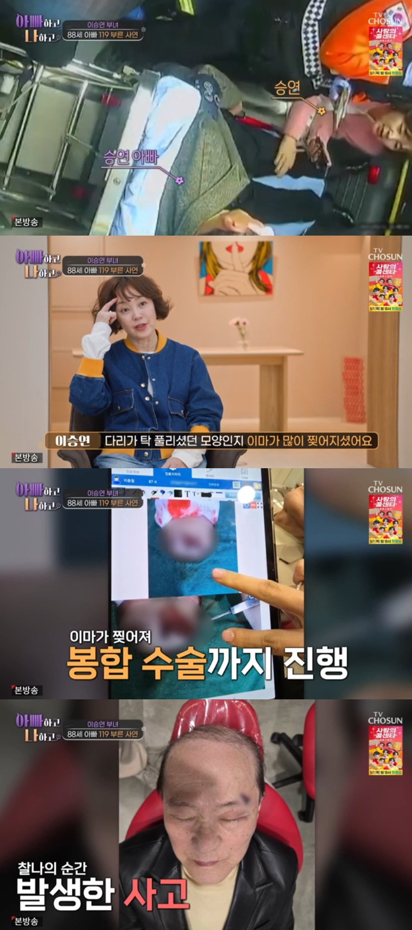29일 방송한 TV조선 '아빠하고 나하고'에는 이승연의 부친이 부상을 당한 근황이 전해졌다.