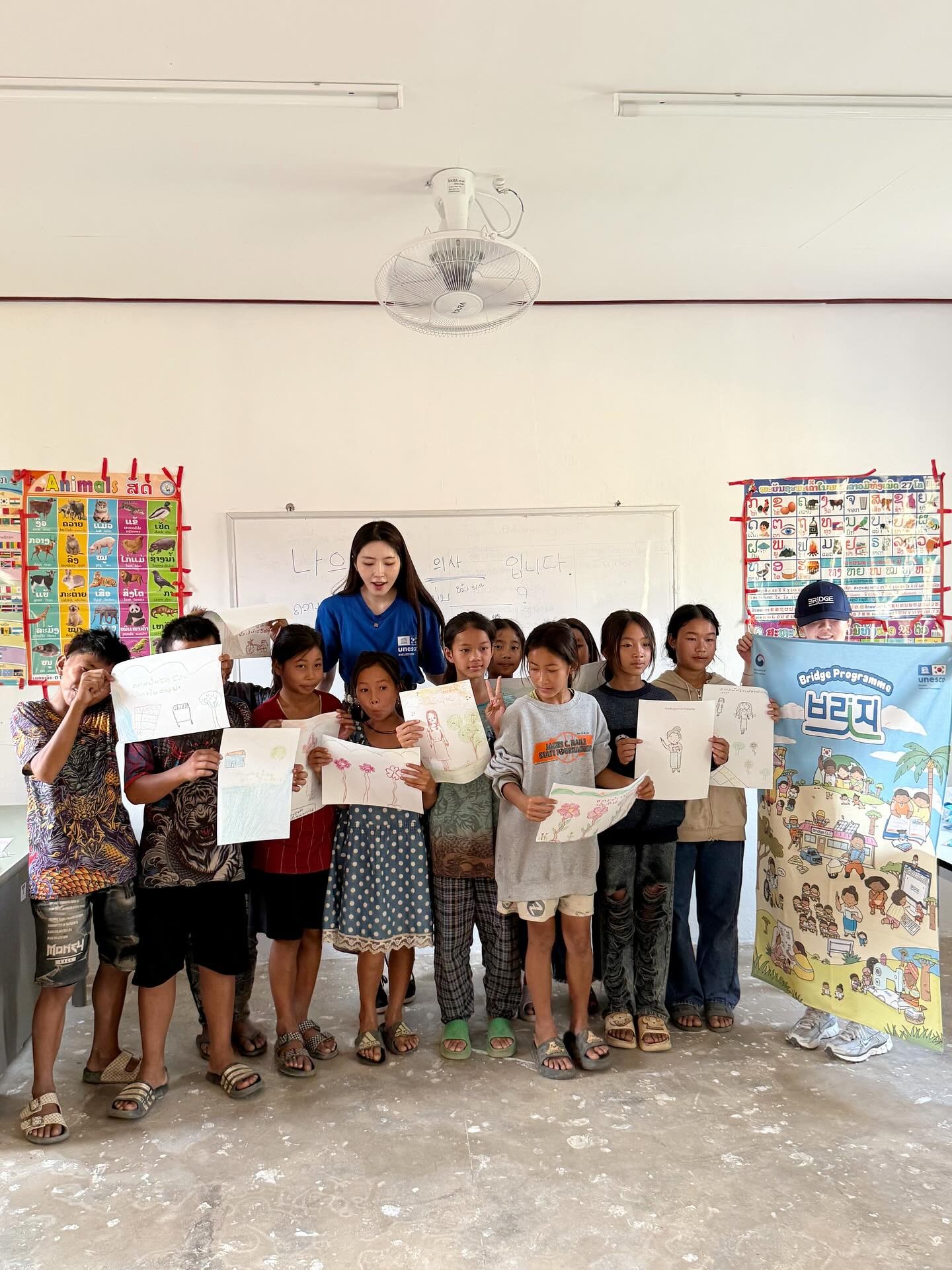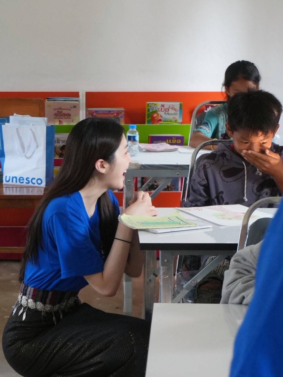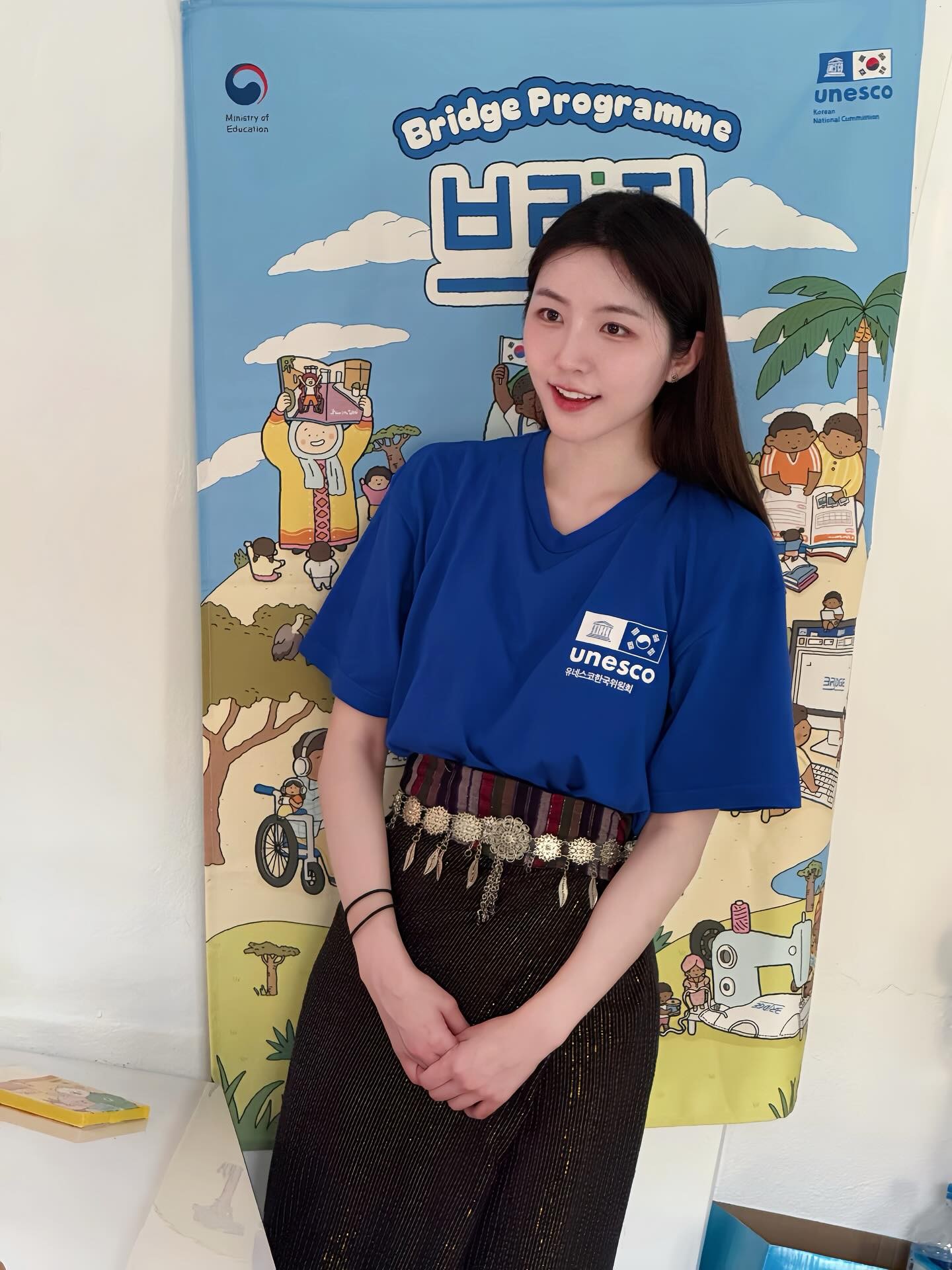 사진 속 성해은은 유네스코 한국위원회 티셔츠를 입고 라오스 아이들과 즐거운 시간을 보내고 있다.