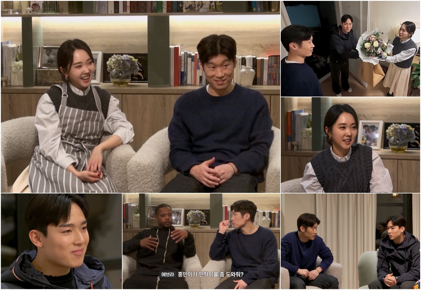 박지성♥김민지의 스윗 홈에 초대된 에브라는 김민지를 위한 꽃다발을 건넸다. 여섯 번째 서포트 주인공인 양민혁도 꽃다발을 들고 등장했고, 화사한 꽃을 선물 받은 ‘안방마님’ 김민지는 기뻐하며 손님들을 반겼다.