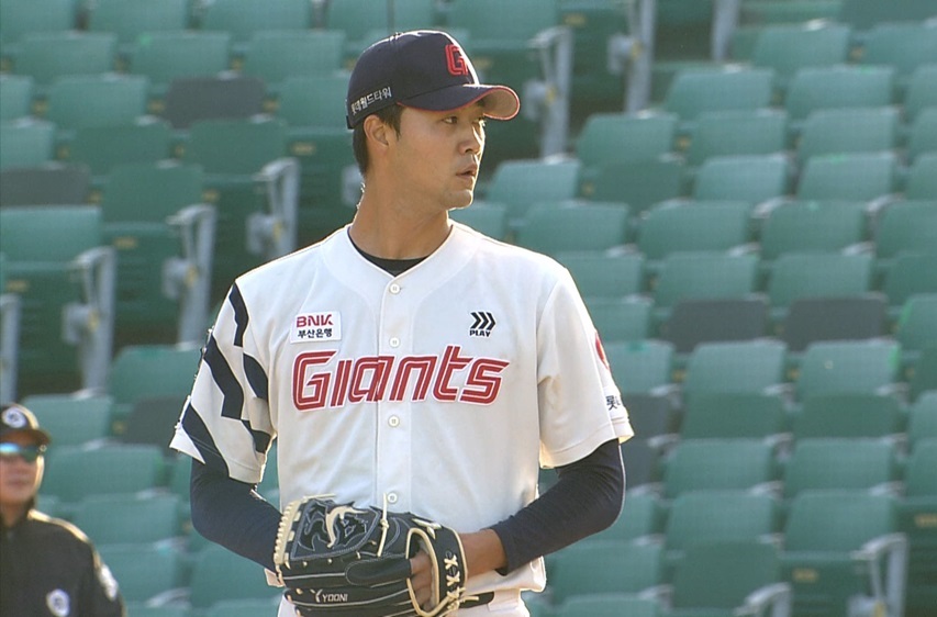윤성빈은 4회 말 선두타자 박관우에게 좌익수 뒤 2루타를 맞고 이날 첫 피안타를 기록했다. 이후 우익수 뜬공으로 아웃 카운트를 하나 늘린 윤성빈은 문정빈과 이태훈에게 연속 볼넷 허용으로 1사 만루 위기를 자초했다.
