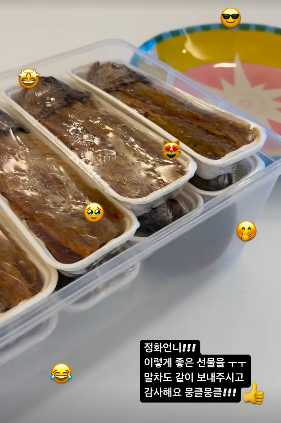 지난달 30일 고현정은 "정화언니 이렇게 좋은 선물을. 말차도 같이 보내주시고 감사해요 뭉클뭉클"이라며 보리굴비, 고추장 등이 담긴 선물의 영상을 찍어 올렸다.